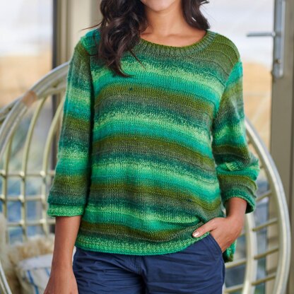 Looking for something simple for summer? Subtle texture and cool colour changes make Monica Russel’s jumper a tempting choice.