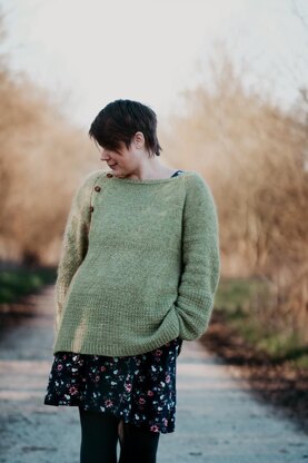 Er wird nahtlos von oben nach unten in Runden gestrickt. Das rustikale Strukturmuster verleiht ihm einen echt coolen Look und durch das geteilte Bündchen hat er einen fließenden Abschluss.