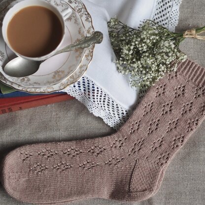 These socks are part of the Vintage Love Story Collection of 3 patterns inspired by an inscription of two lovely old fashioned names on my antique engagement ring. Each pattern has a little bit of story of my imagined characters Cyril and Rita and their life together.