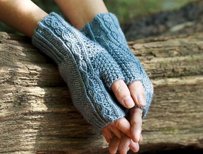 Riverbank Mitts are a study in texture: smooth purl stitches, nubby seed stitch, raised twisted stitches and a meandering slipped panel. Quick to knit, these mitts make a stylish gift for yourself or a lucky recipient.