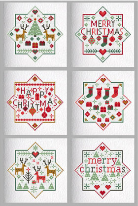 Counted Cross Stitch Kit to make 6 finished Christmas Cards. There are 6 different designs which after stitching are then backed, cut out and applied to the front face of the single fold cards included. Worked in full cross stitch throughout - no half or straight stitches - as are all our cross stitch designs.Kit contains - x6 pre-cut fabric pieces of 14 count white Aida, x6 pre-cut pieces of fusible (iron-on) backing fabric, 6-stranded Anchor embroidery threads, needle, charts, full instructions, x6 white single fold 147mm square cards (with a 'hammer' surface on the outside, smooth on the inside) x6 155mm square envelopes.