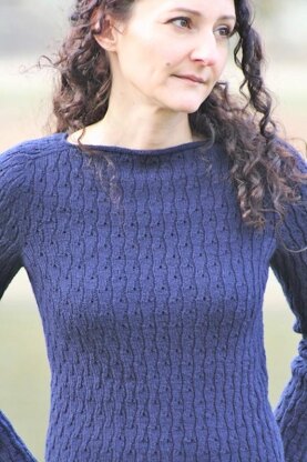 The sweater is knit in the round from the top down and features contiguous sleeves, a construction choice that allows the stitch pattern to flow smoothly and uninterrupted over the shoulders and into the body. oothly and uninterrupted over the shoulders and into the body. It has an unusual approach to sizing; depending on your choice of needles and yarn, you will end up with a different size. The pattern gives detailed information about this. Thanks to the extreme elasticity of the stitch pattern, any given Rivulets sweater will fit a broad range of body sizes and shapes.