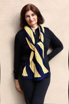 This scarf has a unique diagonal stripe that casual and can be made up in your favorite school colors.
