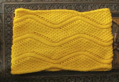 You can make it narrow or wide (lane or motorway?), short or long, and use a range of yarns and needles. The pattern is written in 2 variations for a 10ply/worsted weight (yellow sample) that is wide but short; and an aran weight yarn (cream sample) that is narrower but longer. Other variations are easily possible.