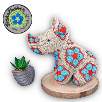 In this pattern, you will be guided step by step through the African Flowers technique to create Robert, the enchanting baby rhino. The pattern include detailed guidance on creating the 25 individual flower elements that make up Robert, accompanied by many illustrative pictures.