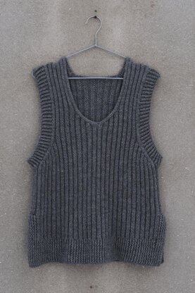 The Rock slipover is a little bit below hips length. It is worked top down and has a V-neck. The Rock slipover is worked in Rib stitch pattern and it has cute overlapped slits on both sides. Sleeves holes, hem, and slit edges are finished in Twisted rib stitch pattern. The Rock slipover is a perfect knit for wearing on top of shirts.