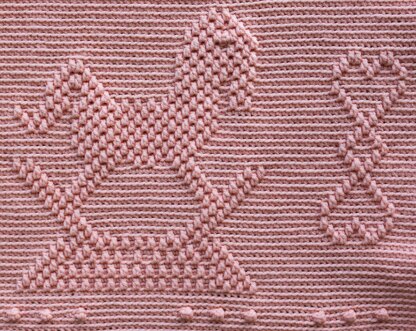 Rocking Horses on Parade. Adorable rocking horses all lined up in a row! Made from just easy single and double crochet stitches. Work your sc in back lp of st. Work your dc in front lp of st 2 rows below, which forms the design. Instructions are given to make a 47" x 35" child-size version using worsted weight yarn and a 41 3/4" x 31" baby-size version using sport weight yarn. Graph and written instructions included. See our website for a how-to video tutorial showing how easy this stitch technique is to do.