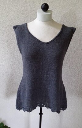 A flirty feminine lace edge adorns this simple summer tee. Side shaping creates a flowing, slightly dipped hem.