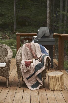 This mid-century modern inspired blanket is a stunning graphic addition to any home. A sea of garter stitch provides a meditative knit with addicting modular color changes.