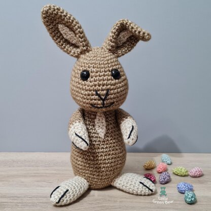 Rodney spends his days searching the fields for tasty crops and patches of lush grass - he gets very excited if he finds a dandelion! Rainy days he spends indoors, exploring the warren underneath, visiting his 8004 brothers and sisters in their burrows along the way. He sits 11.5 inches tall (when made with recommended materials).