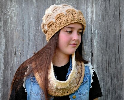 This is a crochet pattern for a slouchy beanie hat and cowl designed by me. They feature unusual textured stitches that made me think of ancient architecture; so I named the pattern Roman Arches Hat and Cowl.
