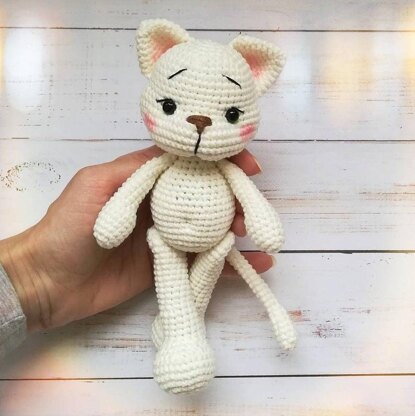 This PDF pattern includes 16 pages with step by step instructions and photos so you can crochet your own cat. There are also links on short video-lessons (if you will need some help). Finished toy is about 7" (18 cm.) tall when you use yarn 50g=160m and a 2.50 mm. crochet hook. For this pattern you need to have intermediate crochet and amigurumi skills and to know how to read crochet patterns. You need to know the following crochet terms: • ch – chain • mr – magic ring • sc – single crochet (UK=double crochet) • ss – slip stitch • inc – increase • dec – decrease Supplies: • Yarn (50g=160m or other) • 2.50 mm. crochet hook • 2 safety eyes (7 mm) • Black thread (for the muzzle) • Yarn needle • Stitch markers • Scissors, pins • Stuffing material of your choice This pattern is for personal use only. PLEASE DO NOT COPY, SHARE, TRANSLATE OR DISTRIBUTE PATTERN. You can sell the toys you make!