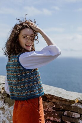All over Fair Isle tank top knit using traditional Shetland techniques.