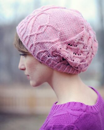 A slouchy, lace and cable hat inspired by E.E. Cummings’ poem “I Carry Your Heart With Me" and originally designed for Woolgirl's Poet's Club in February 2013.