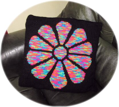 Materials required for cushion: size 3 mm knitting needles, 150g DK weight yarn in main colour plus 75g in a contrast colour, 3 x 2 cm buttons for cushion back, 40 cm square cushion pad. NOTE: The cushion works best if strongly contrasting colours are used.