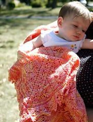 A pretty, lightweight square shawl in two sizes (S/L) for baby, worked in allover rosebud patterns from the center out in the round. The eyelet motifs used throughout are easy to work with all-knit rest rows in between. Pretty as a picture, it is also practical, when knit up in soft, machine washable fingering yarn. Substituting yarn and/or needles will result in an overall variation in size.