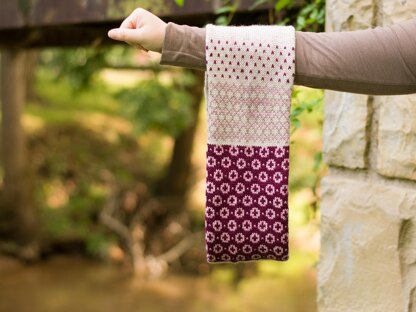 Materials Main Color: 270 yards (247 m); Contrast Color 1: 55 yards (50 m); Contrast Color 2: 60 yards (55 m); Contrast Color 3: 85 yards (78 m) fingering weight yarn. Shown in Shelridge Yarns 80/20 Fingering (80% superwash wool/20% nylon, 185 yards (169 m)/50 g), Linen (MC), Ecru (CC1), Apple Blossom (CC2), Maroon (CC3).