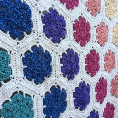 Instructions include - Flower motif Turning the flower into a hexagon Half flowers with border Joining method (join as you go) Hexagon Blanket border