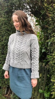 I first started knitting for my nieces and nephews and so this beautiful jumper is named after one of my nieces! This thick cable pattern gives the pretty effect inherent in cable designs but the use of thicker wool minimizes the painstaking process that such work often involves.