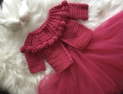 Roses Cardigan Design is a fashionable flowery cardigan, perfect for wearing over party dresses or daily casual wear in spring, fall or winter.