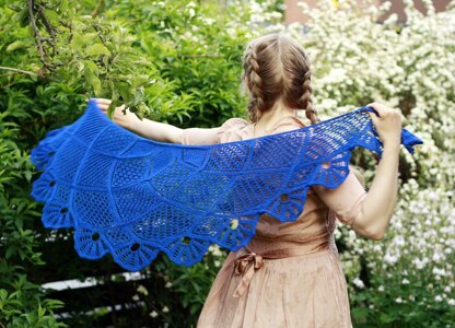 Blue shawl used all of 1 skein Wollmeise Pure in Kornblume 100% wool, 575 yd/526 m per 150g on 3.5 mm (US 4) needles. Blocked size is 130 x 45 cm (51 x 18 inches).