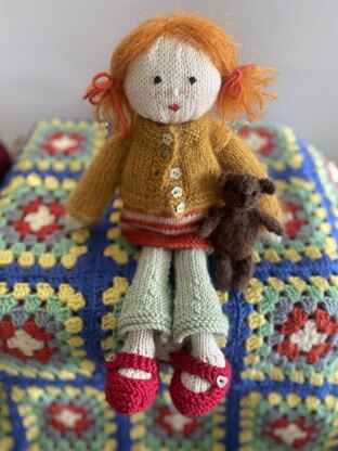 Rosie is a soft doll made with interchangeable clothes. She also has a little bear.