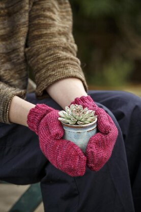 Cold hands need a straightforward solution – quick to knit mittens that keep fingers toasty and the chill away. Work a simple ribbing in the round before cruising up the hand in gentle stockinette and let the handdyed colour of the yarn do all the talking.