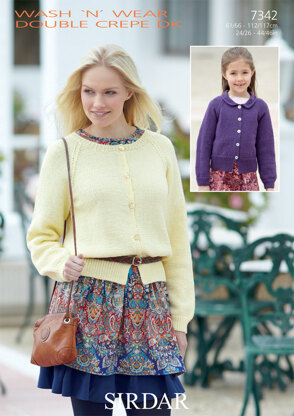 Round Neck and Collar Neck Cardigans in Sirdar Wash 'n' Wear Double Crepe DK - 7342 - Downloadable PDF