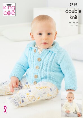 Round Neck, Collared and V Neck Cardigans Knitted in King Cole Big Value Baby DK - 5719 - Downloadable PDF
