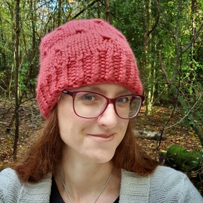 The Big Hats collection is a group of quick hats knitted out of thicker yarns. Rubies in my Pocket is one of the easiest hats with instruction videos and tips through out for beginners. There are instructions for a fitted and slouchy version.