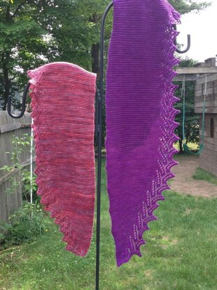 Instructions are provided for weighing your yarn so that you can maximize the amount used, or knit the shawlette at any gauge. There are also instructions for modifying the shawlette to be wider, narrower, or triangular.