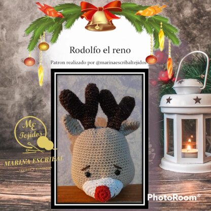 Amigurumi cabeza de Ridolfo el Reno para decor<r tu árbol de navidad o tu casa