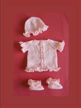 Cardigan Jacket (16" chest ), Hat,   Booties and Mittens
