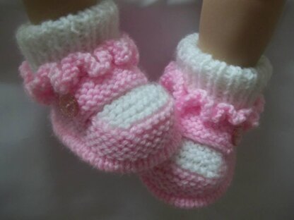 This is a PDF knitting pattern for you to make a pair of baby girls booties in 3 sizes. Newborn, 0-3 months and 3-6 months. You will need 50 grams of double knit wool, (pink & white) 3 3/4 mm normal knitting needles.