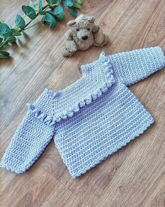 This cute sweater is made from the top down, using a simple half double crochet (half treble crochet UK) stitch, it is quick and easy to work up.