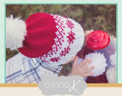A fun and festive winter hat or slouchy! This pattern is made with a split stitch that mimics the look of knit!