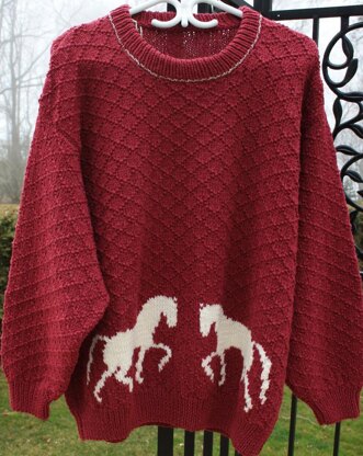 The sweater can be knitted either stocking stitch or, by following the charts, in the Diamond Brocade Stitch.