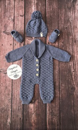 The Hat is knitted from the bottom up and sewn down the back seam. The little Booties are also included in the instructions and are quick to knit up. This pattern provides the instructions to make all 3 pieces and is suitable for a 0-3 month-old baby or a 16 - 22" Reborn doll.