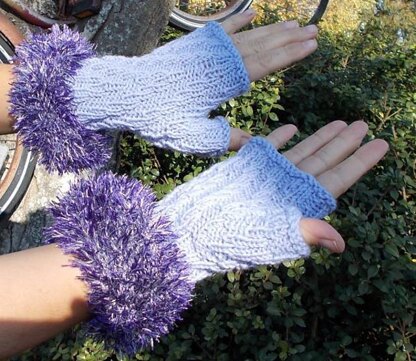 Mitts in my favorite Pinnacle Chevron stitch, this time with fun faux fur cuffs, that can be worn folded up or down. Also includes a variation with only a short fur border.