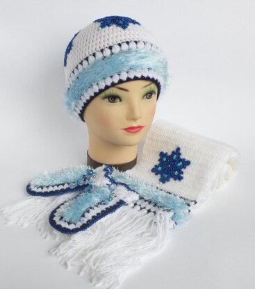 SKILL LEVEL - INTERMEDIATE This pattern is for: hat + mittens + scarf Written in STANDARD AMERICAN TERMS for DK yarn (American thickness - 3: Light Worsted, DK) All instructions, photos, diagram etc., shows the size from baby to adult