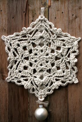 This lovely holiday ornament/wall hanging was inspired by just one skein of Malabrigo Rasta and a big hook, as a way to say thank you to my newsletter subscribers and Ravelry group members. It was sent to them exclusively in November, 2017, and is just now being made available to the wider crafty public. In a few quick hours you can create this decoration; if you choose to hand-bead it (like I did for the sample), it will then take you a few additional hours to complete.