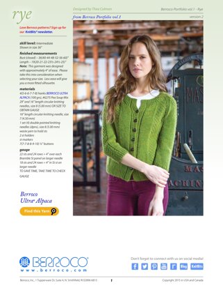 Rye Cardigan in Berroco Ultra Alpaca is a Knitting pattern by Berroco, available as a Downloadable PDF and includes instructions in English. Super fun to make, this pattern could be your next masterpiece!