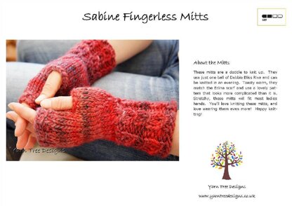 You can purchase the pattern here or on Yarn Tree Designs website as a pattern or as a kit which includes yarn and pattern - Sabine Fingerless Mitts Knitting Kit