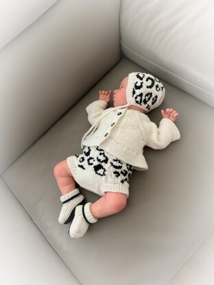 This pattern provides the instructions to make a 4 piece set, suitable for a 0-3 month old baby or a 16 - 22" Reborn doll, the size depends on the needles and yarn used. The details of which are in the pattern.