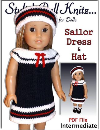 Sailor Set. Fits American Girl Doll and 18 inch. Knitting.