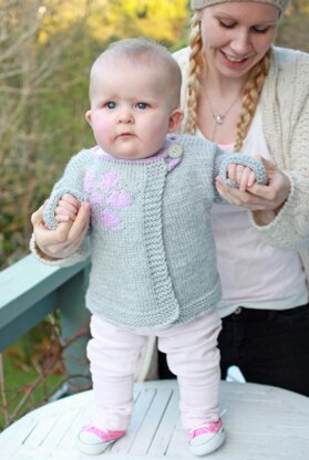 Sakura is a simply shaped cardigan with a double breasted front and lovely detailing in the intarsia and i-cord, you can choose to work short sleeves for a layering garment or long sleeved for extra warmth, and if you feel that the flower is too girly the cardigan looks equally stunning without it, and is perfect for a baby boy.