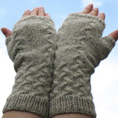 Makes use of 'cable fabric' pattern to add shaping and interest to an otherwise simple fingerless mitten.