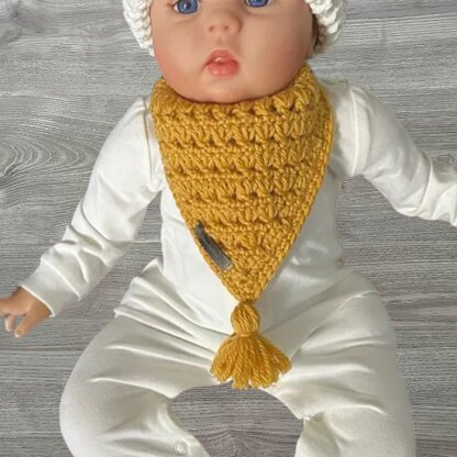 Create a crochet baby bandana bib worked in textured triad stitch with a classic adjustable shape. The sweater-coordinating design is practical for everyday wear during teething and helps keep outfits dry, with an optional tassel for handmade character.