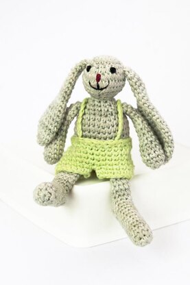 Sam the bunny measures 12cm from head to heel. The pattern is written in UK terminology. The instructions explain how to make a magic ring, increases, invisible decreases and how to close off body parts for a neat finish.