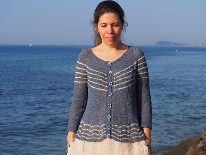 Samaria is a circular ¾ sleeve length yoke cardigan that is worked flat seamlessly from the top down. The neck is worked in plain stockinette, to form a nice rolling out edge, after that, several series of short rows are used for a comfortable and beautifully shaped finish.